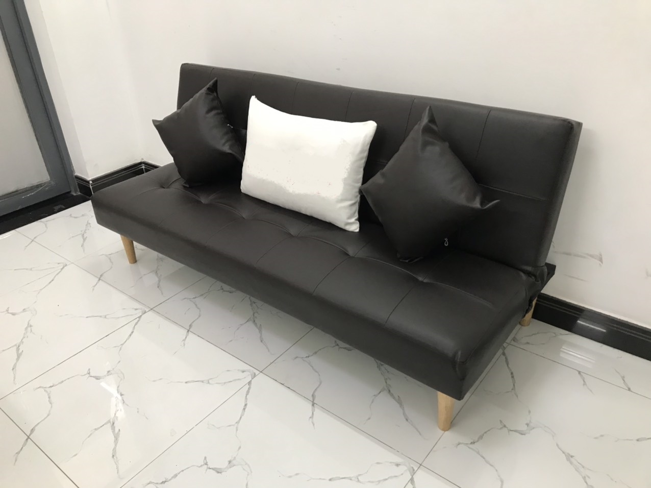 Sofa bed, sofa giường 1m7x90, có thể bật ra thành giường để nằm Kích thước 1m7x90 (kích thước phổ thông) Chất liệu: khung gỗ dầu, mút d30, simili Bao gồm: ghế dài 1m7x90, 2 gối