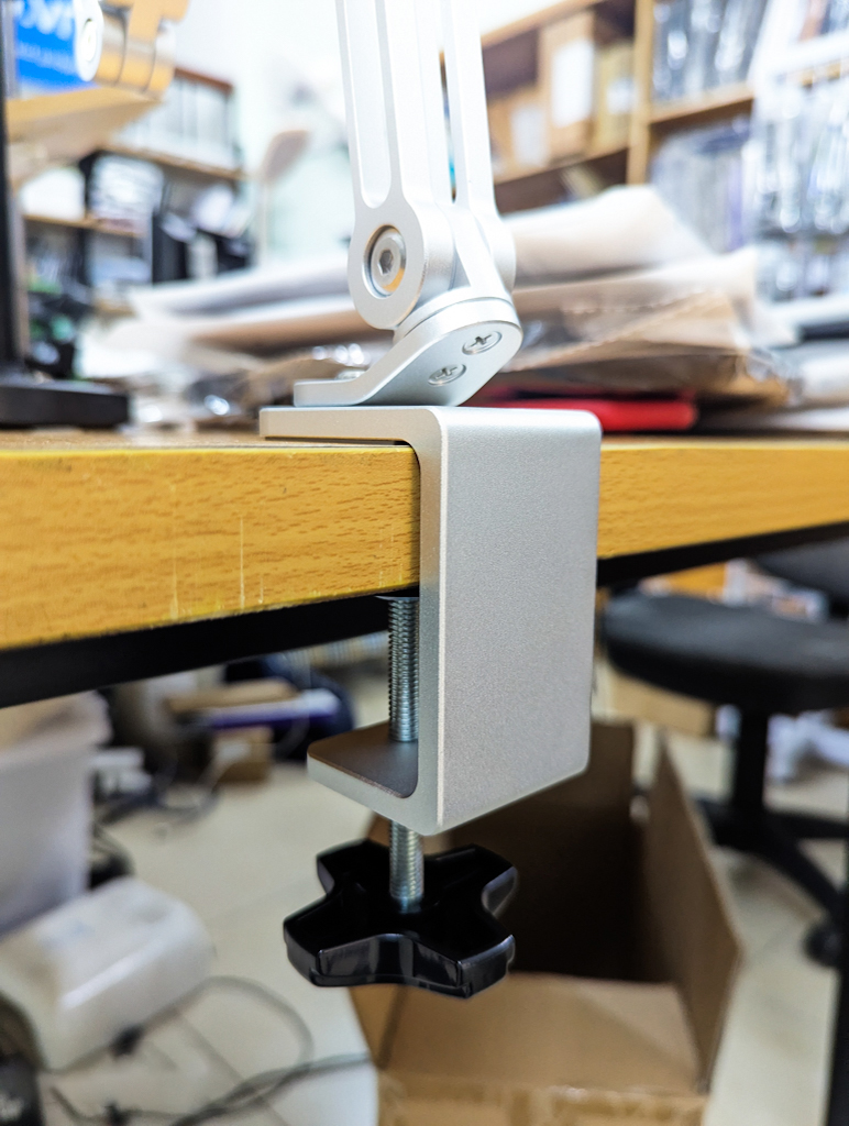 Giá đỡ đi kèm hai tùy chọn lắp đặt (kẹp bàn và khoan lỗ), giúp bạn có thể tự lắp đặt tại nhà một cách nhanh chóng và tiện lợi Sản phẩm được làm từ
