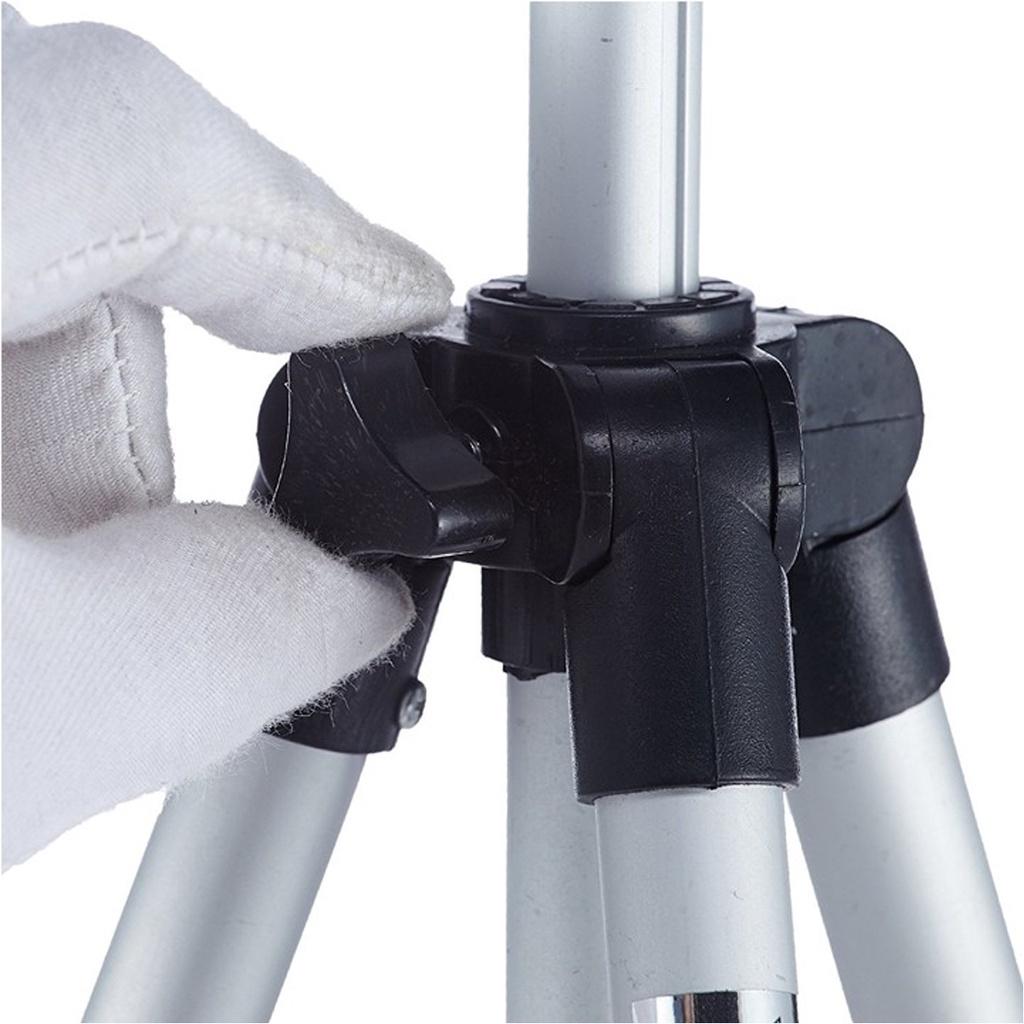 3 Chân có thể kéo dài hoặc chỉnh ngắn lại – Chiều Dài tối đa: 105Cm – Chiều dài Tối thiểu 35Cm – tải trọng tối đa là 1,5kg.