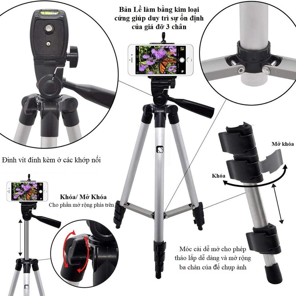 Trụ quay giá đỡ 3 chân để điện thoại máy ảnh quay tiktok có thể xoay 360 độ - quay và chụp ở mọi góc độ khi cần.