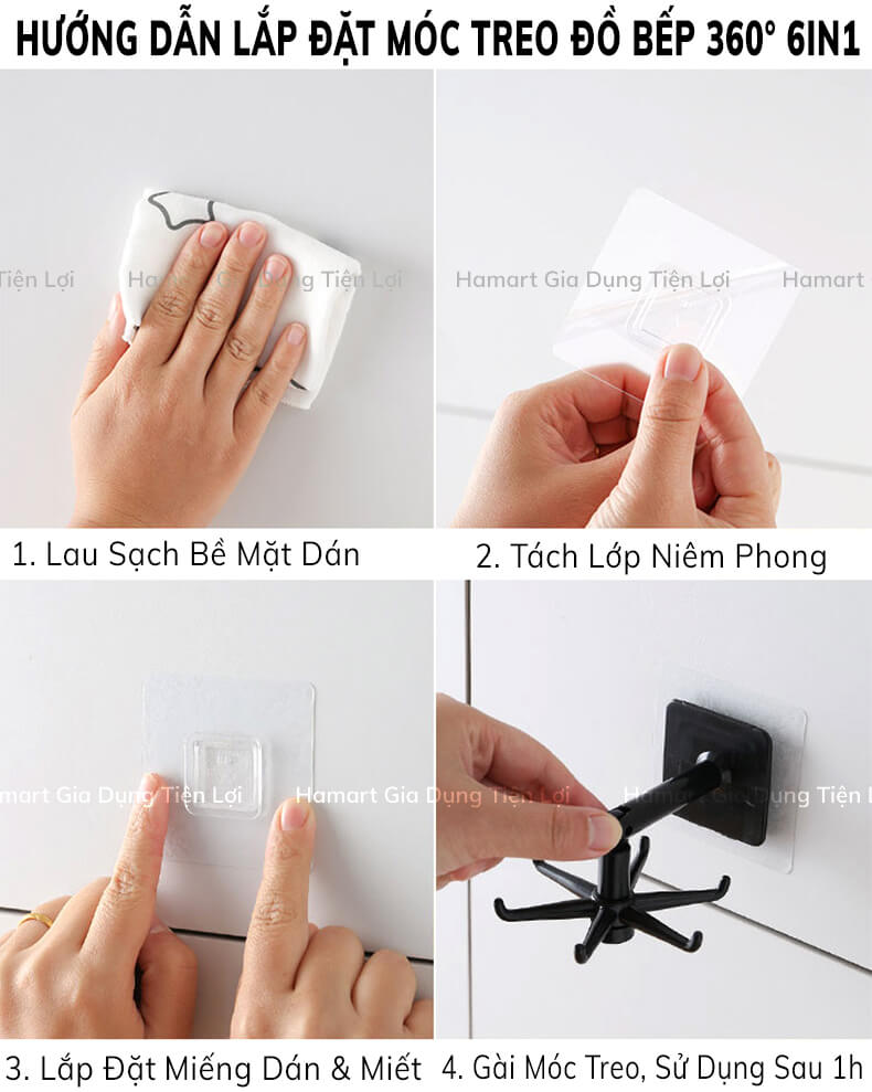 - Đóng gói: Bao bì OPP zip + Móc nhựa 6in1 + Miếng dán tường HƯỚNG DẪN LẮP ĐẶT:
