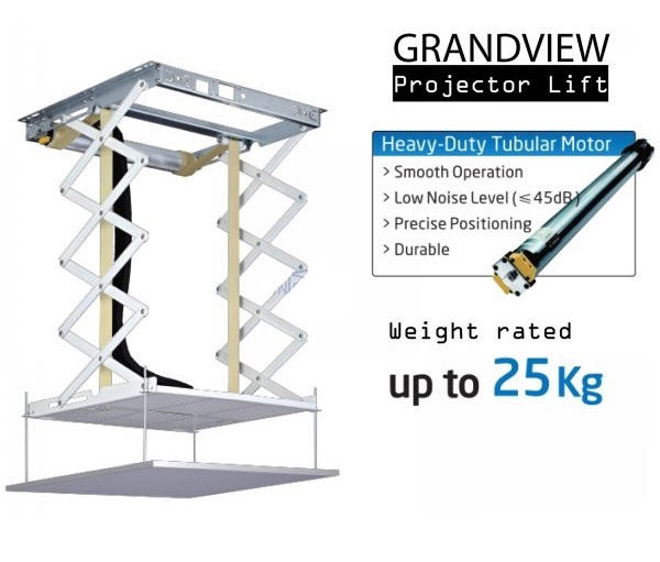 Giá treo máy chiếu Grandview GPCK-ME500 là phụ kiện giá treo điện âm trần, nhằm đáp ứng đa dạng nhu cầu sử dụng của người dùng. Sản phẩm này sẽ giải quyết tốt “yêu cầu” của những vị khách hàng muốn thiết lập máy chiếu cố định lên trần nhưng lại không muốn để lộ ra bên ngoài trần nhà. Chính nhờ thiết bị giá treo điện âm trần Grandview GPCK-ME500 mà không gian căn phòng không hề bị phá vỡ. Giá treo điện âm trần được sử dụng để gắn máy chiếu cố định lên trần, với ưu điểm của khung treo điện tử, cho phép người dùng linh hoạt điều chỉnh các chức năng của máy chiếu thông qua điều khiển thông minh từ xa. Grandview GPCK-ME500 có cấu tạo phức tạp, bao gồm một bát gắn cố định trên trần bê tông và một động cơ thiết kế để di chuyển và nâng hạ máy chiếu. Tất cả các chi tiết trên khung giá treo điện âm trần GPCK-ME500 được làm từ chất liệu kim loại cao cấp chống gỉ và được sơn cách điện, có tuổi thọ lên đến 20 năm. Kích thước của Grandview GPCK-ME500 là 595mm x 595mm x 135mm, và trọng lượng 15.3kg. Sản phẩm này có khả năng chịu tải máy chiếu tối đa lên đến 25kg và phù hợp với máy chiếu có kích thước 460mm x 240mm x 460mm. Với kích thước và tải trọng như vậy, người dùng cần lưu ý vị trí lắp đặt và thiết kế sao cho trần có thể chịu tải trọng lớn hơn 40kg để đảm bảo an toàn. Trong quá trình lắp đặt giá treo máy chiếu Grandview GPCK-ME500, cần lưu ý rằng khoảng cách tối thiểu từ trần bê tông đến thạch cao (trần gỗ) là 60.5cm. Vì độ cuốn tối thiểu của khung treo và máy chiếu là 60.5cm, vì vậy cần có khoảng cách trên 61cm để đảm bảo quá trình lắp đặt đơn giản và thẩm mỹ hơn. Grandview GPCK-ME500 có thiết kế hiện đại, cấu hình chắc chắn và được chế tạo từ vật liệu cao cấp, hy vọng sẽ giải quyết tốt những vấn đề tồn đọng của khách hàng trong quá trình lắp đặt giá treo máy chiếu điện âm trần, đem đến tiện ích và độ bền cao cho người sử dụng. Thông số kỹ thuật Giá treo máy chiếu Grandview GPCK-ME500