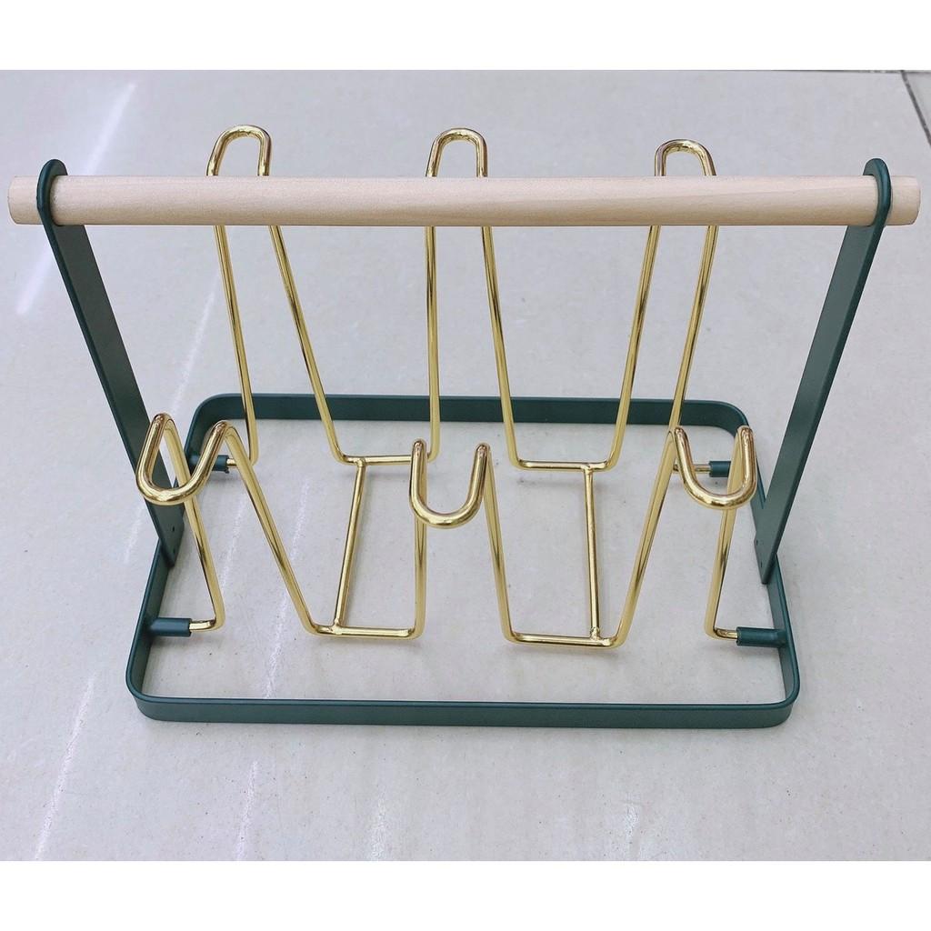 ✨Giá úp ly cốc chữ nhật sơn chống rỉ màu xanh cổ vịt kết hợp vàng sang trọng