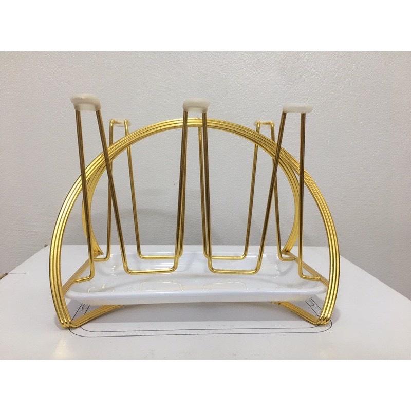 Giá cắm 6 chiếc cốc dạng gọn (CL95965) Giá có khay hứng nước Chất liệu sắt sơn tĩnh điện cao cấp màu vàng cực sang chảnh Dễ vệ sinh, không bị hoen rỉ Kiểu dáng