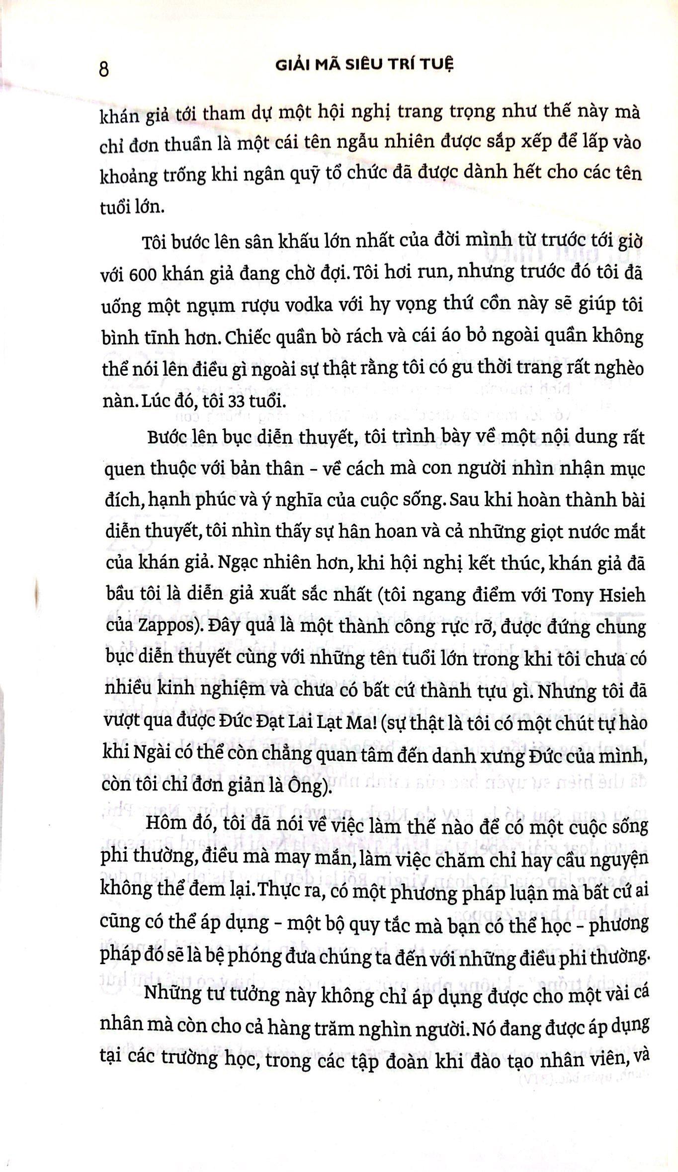 Giải mã siêu trí tuệ là một bản thiết kế 10 quy tắc giúp bạn phá bỏ xiềng xích của một cuộc sống bình thường để sống một cuộc đời phi thường. Kết hợp tư duy tính toán, lý thuyết tích hợp, tâm linh hiện đại, sinh học tiến hóa cùng với cách dẫn dắt hài hước, Vishen Lakhiani cung cấp công cụ giúp bạn trở thành một kẻ dám đột phá, thách thức, phát triển cá nhân, bẻ khóa tâm trí và tạo ra các quy tắc mới cho cuộc sống CỦA CHÍNH BẠN.
