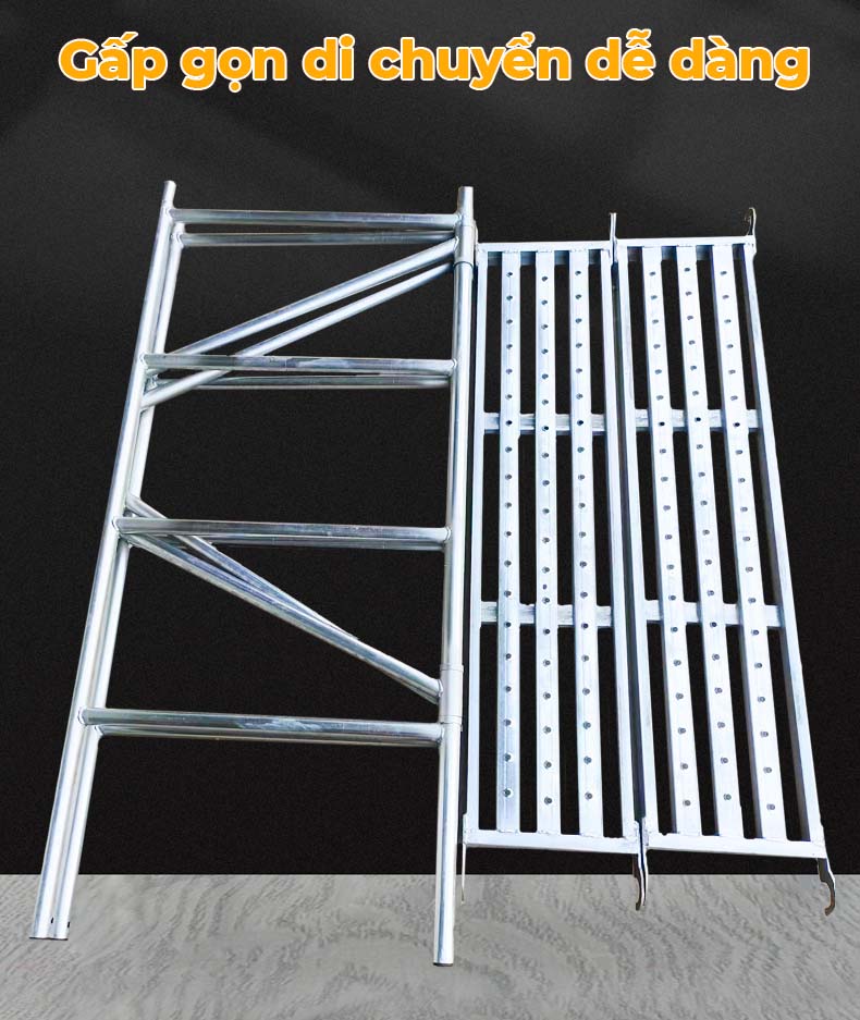 Giàn giáo công trình gấp gọn vô cùng tiện lợi có thể di chuyển đi xa và lắp ghép dễ dàng.