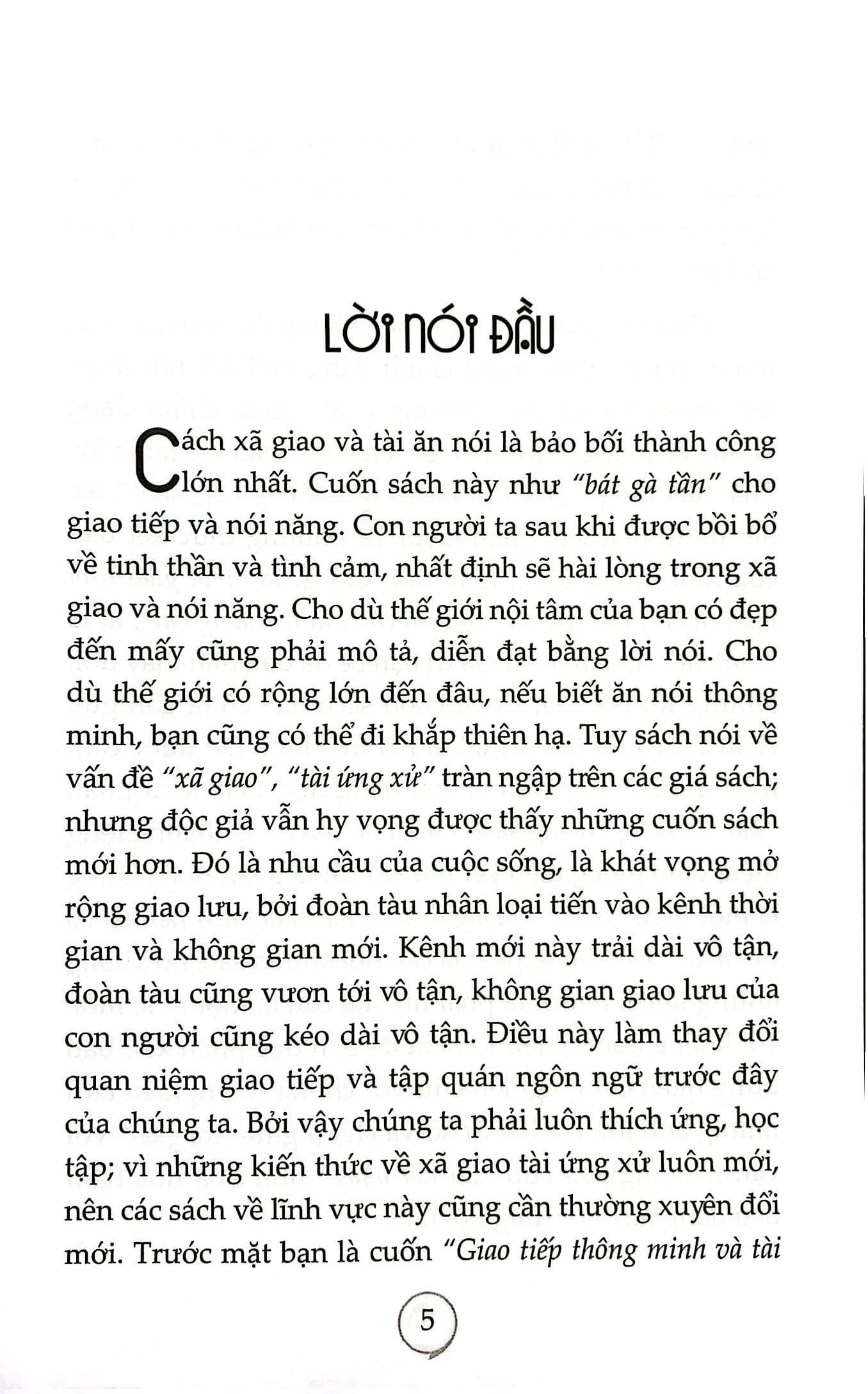 Cuốn sách này sẽ chỉ cho bạn những phương pháp giao tiếp thông minh, cách xử thế khéo léo, những cách thức mềm dẻo khác nhau trong việc bạn xử lý các tình huống. Cuốn sách cũng cung cấp cho bạn những bí quyết để thuyết phục người khác, biến thất bại thành thành công. Và cho dù bất cứ ở tình huống nào, bạn cũng sẽ xoay sở để đối phó với nó một cách nhanh chóng và thông minh.