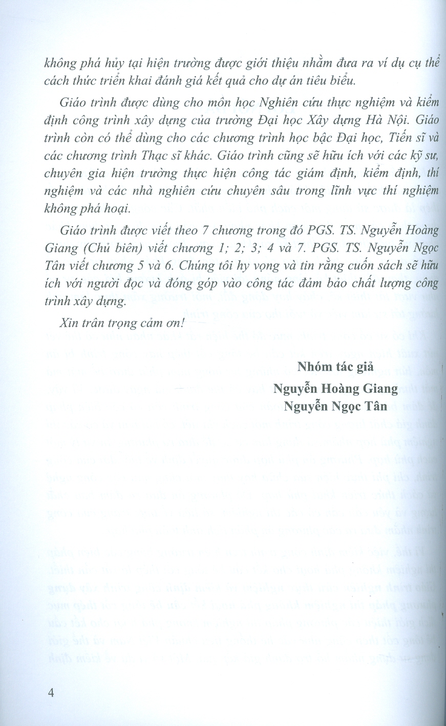 ✨Giáo Trình Nghiên Cứu Thực Nghiệm Và Kiểm Định Công Trình Xây Dựng Phương Pháp Thí Nghiệm Không Phá Hoại Kết Cấu Bê Tông Cốt Thép - PGS. TS. Nguyễn Hoàng Giang chủ biên, PGS. TS. Nguyễn Ngọc Tân