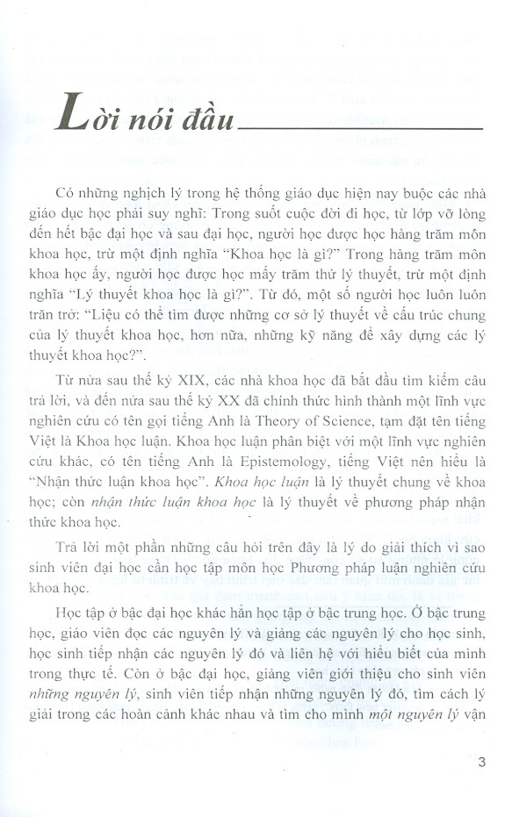 Có những nghịch lý trong hệ thống giáo dục hiện nay buộc các nhà giáo dục học phải suy nghĩ: Trong suốt cuộc đời đi học, từ lớp vỡ lòng đến hết bậc đại học và sau đại học, người học được học hàng trăm môn khoa học, trừ một định nghĩa “Khoa học là gì?” Trong hàng trăm môn khoa học ấy, người học được học mấy trăm thứ lý thuyết, trừ một định nghĩa “Lý thuyết khoa học là gì?”. Từ đó, một số người học luôn luôn trăn trở: “Liệu có thể tìm được những cơ sở lý thuyết về cấu trúc chung của lý thuyết khoa học, hơn nữa, những kỹ năng để xây dựng các lý thuyết khoa học?”.