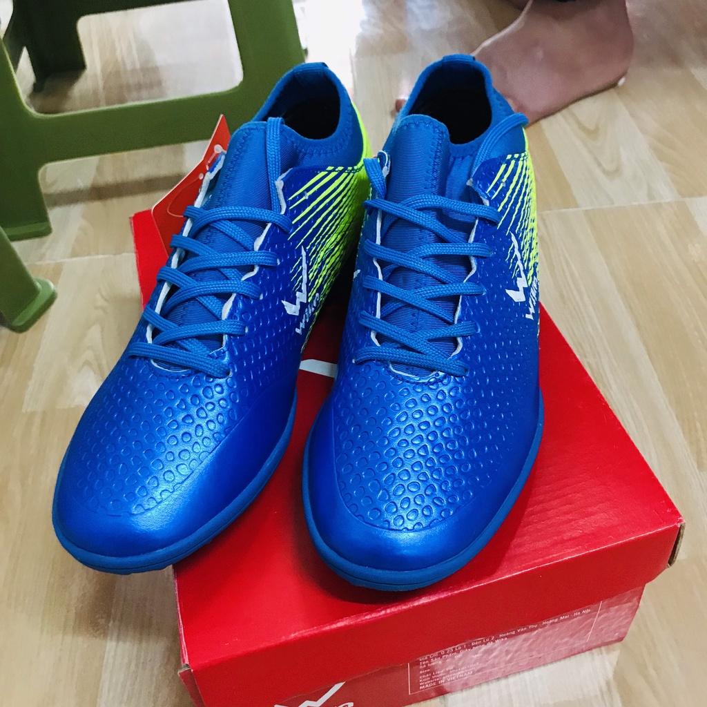 Giày đá bóng futsal mới màu xanh quân đôi cho độ bám sàn tốt cũng như có độ bền cùng độ dẻo dai cao, là chọn lựa lý tưởng của những bạn nam yêu thích