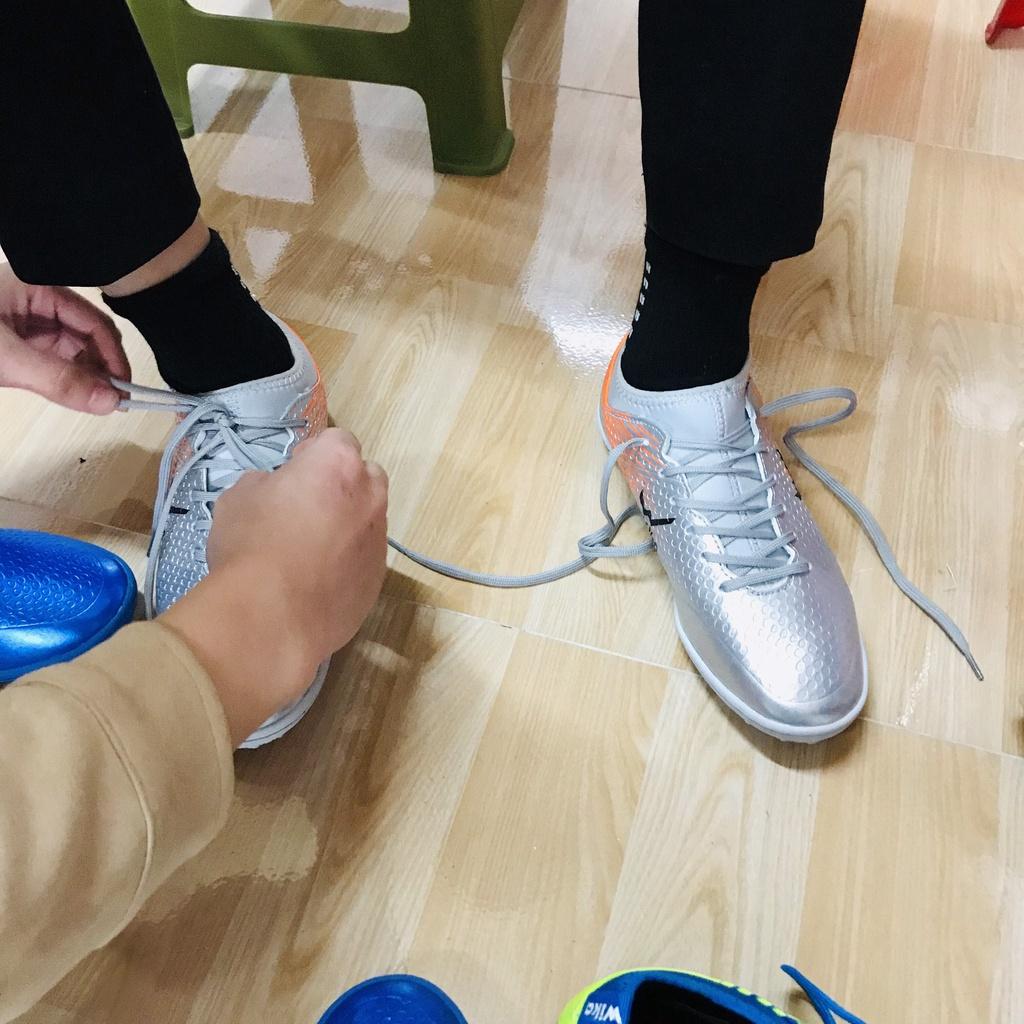 Chất liệu giày làm từ da tăng cường khả năng chống thấm, thoáng khí Phần đế giày đá bóng bằng chất liệu 100% cao su, mềm mại khi sử dụng, đế có rãnh chống trơn,