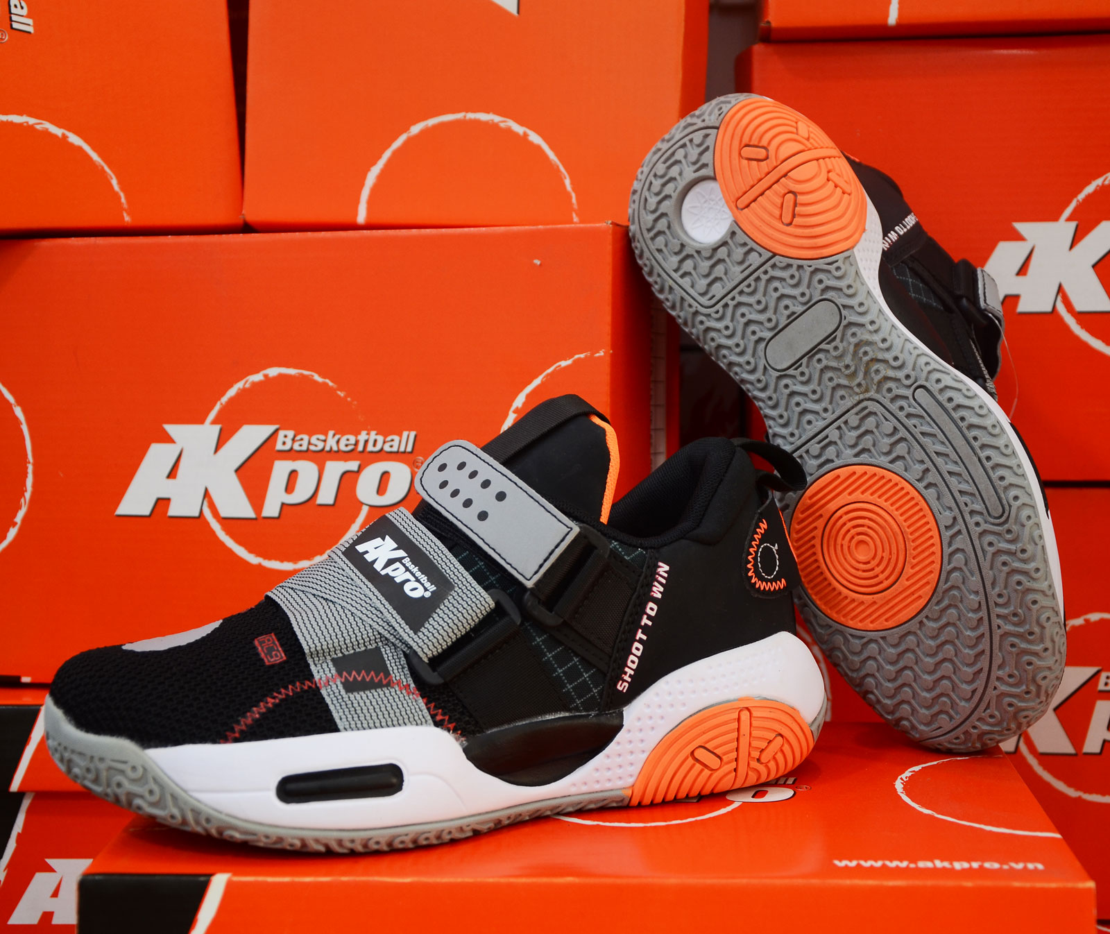 GIÀY BÓNG RỔ TRẺ EM AKPRO AS021 MÀU ĐEN + Là sản phẩm chính hãng được nghiên cứu và sản xuất bởi Công ty ANC Việt Nam. Giày Bóng rổ AKpro Sport ứng dụng