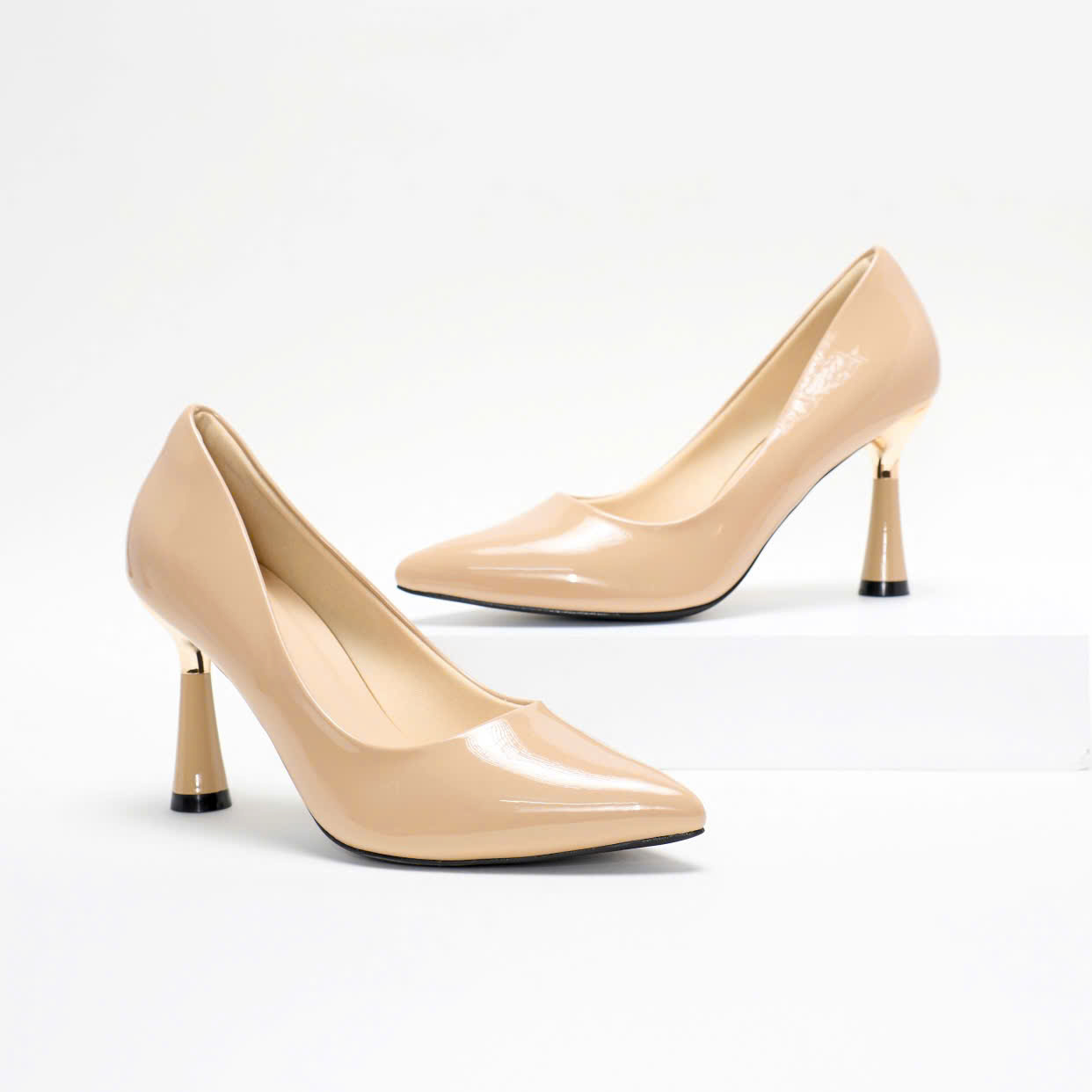 Giày Cao Gót BASSIC 8P PABNO PN22014 – Thanh lịch, sang trọng, dễ phối đồ Chất liệu: Da tổng hợp bóng Chiều cao gót: 8cm Màu sắc: Đen, Kem Kích thước: 35 – 39 Điểm