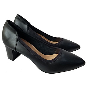 Giày Cao Gót Đế Vuông Giày Công Sở Nữ Da Bò Thật Cao Cấp Gót Cao 3cm Evelynv 3P5116 (Đen)