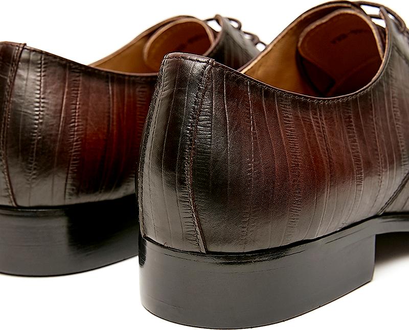 - Thiết kế giày derby sang trọng dành cho quý ông. - Chất liệu da bò thượng hạng được dập vân da trăn giúp sản phẩm của bạn thêm phần đẳng cấp và thanh lịch.