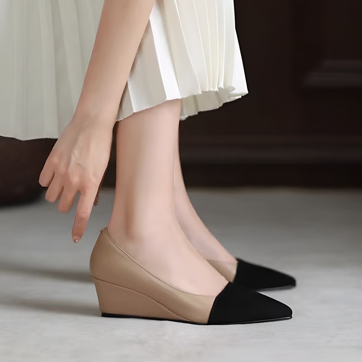 Kiểu dáng: Giày bít mũi thanh lịch, phối đồ chuẩn gu