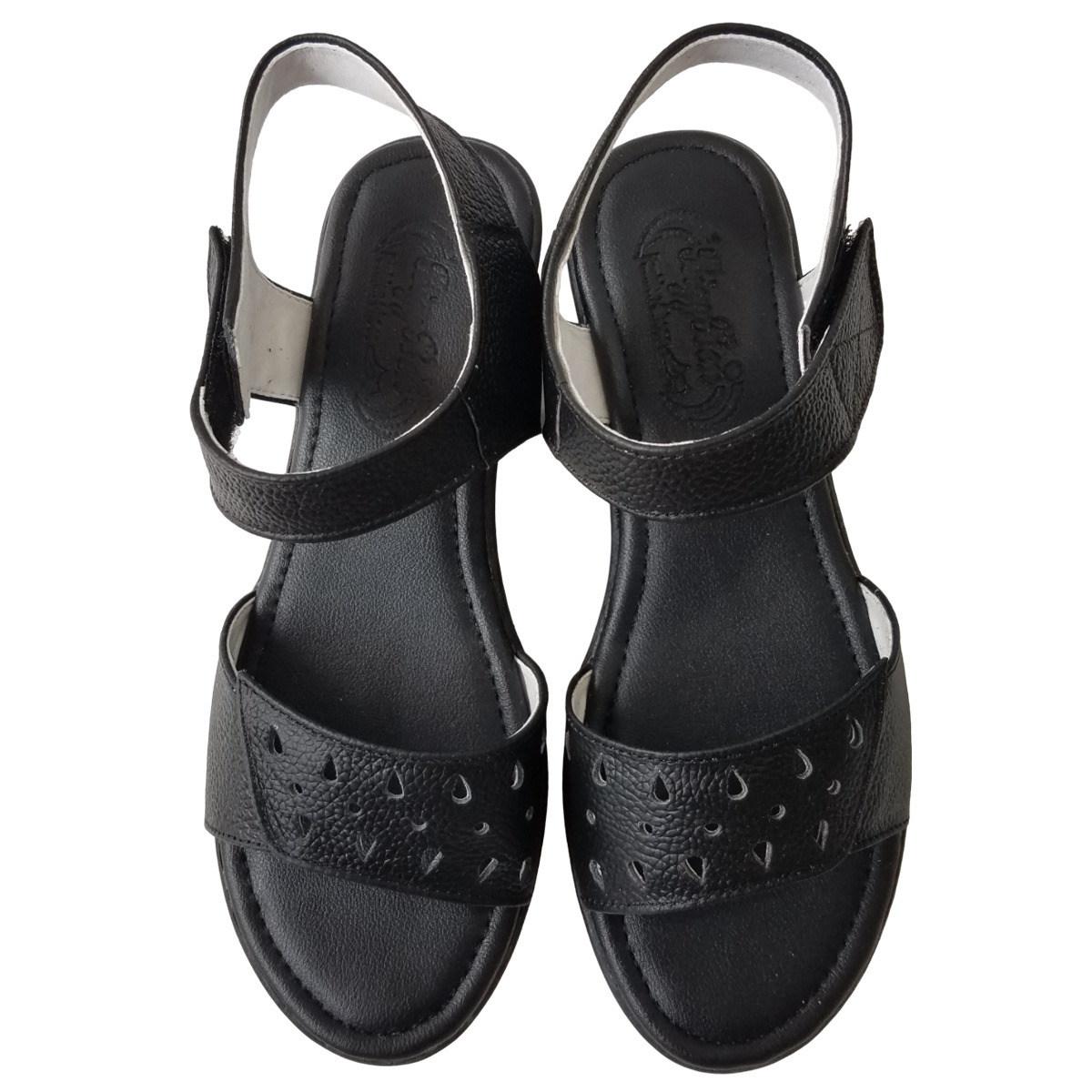 Dép xăng đan nữ đế vuông cao 5cm da bò thật
