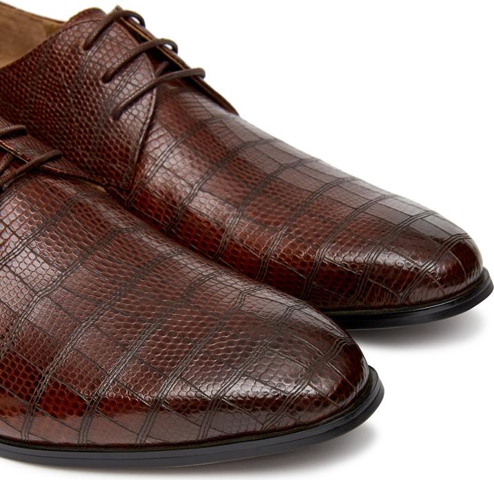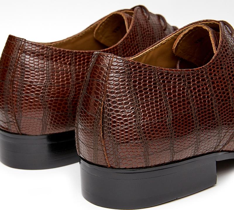 - Thiết kế giày derby sang trọng dành cho quý ông. - Chất liệu da bò thượng hạng được dập vân da trăn giúp sản phẩm của bạn thêm phần đẳng cấp và thanh lịch.