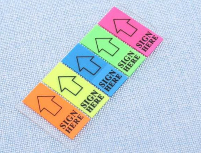Thiết kế: Màu sắc bắt mắt, bản lớn, tiện dụng, dùng để đánh dấu trang, ghi chú, nhắc nhớ; thích hợp sử dụng trong môi trường học tập, văn phòng, công sở.