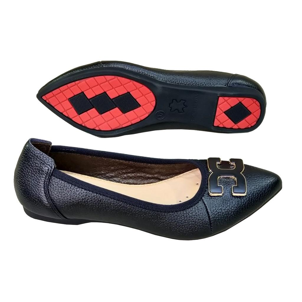 Giày búp bê đế xuồng da thật gót cao 5cm mũi nhọn đế đen thời thượng giúp nàng dễ phối đồ