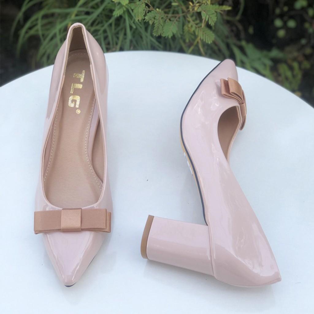- Giày cao gót 7cm da bóng Trường Hải màu đen, hồng CG125 là sự lựa chọn hoàn hảo cho những ai yêu thích sự sang trọng và quyến rũ. - Chiều cao gót 7cm: