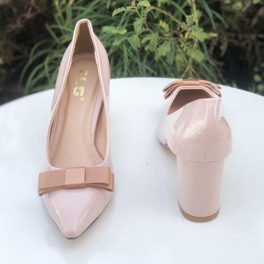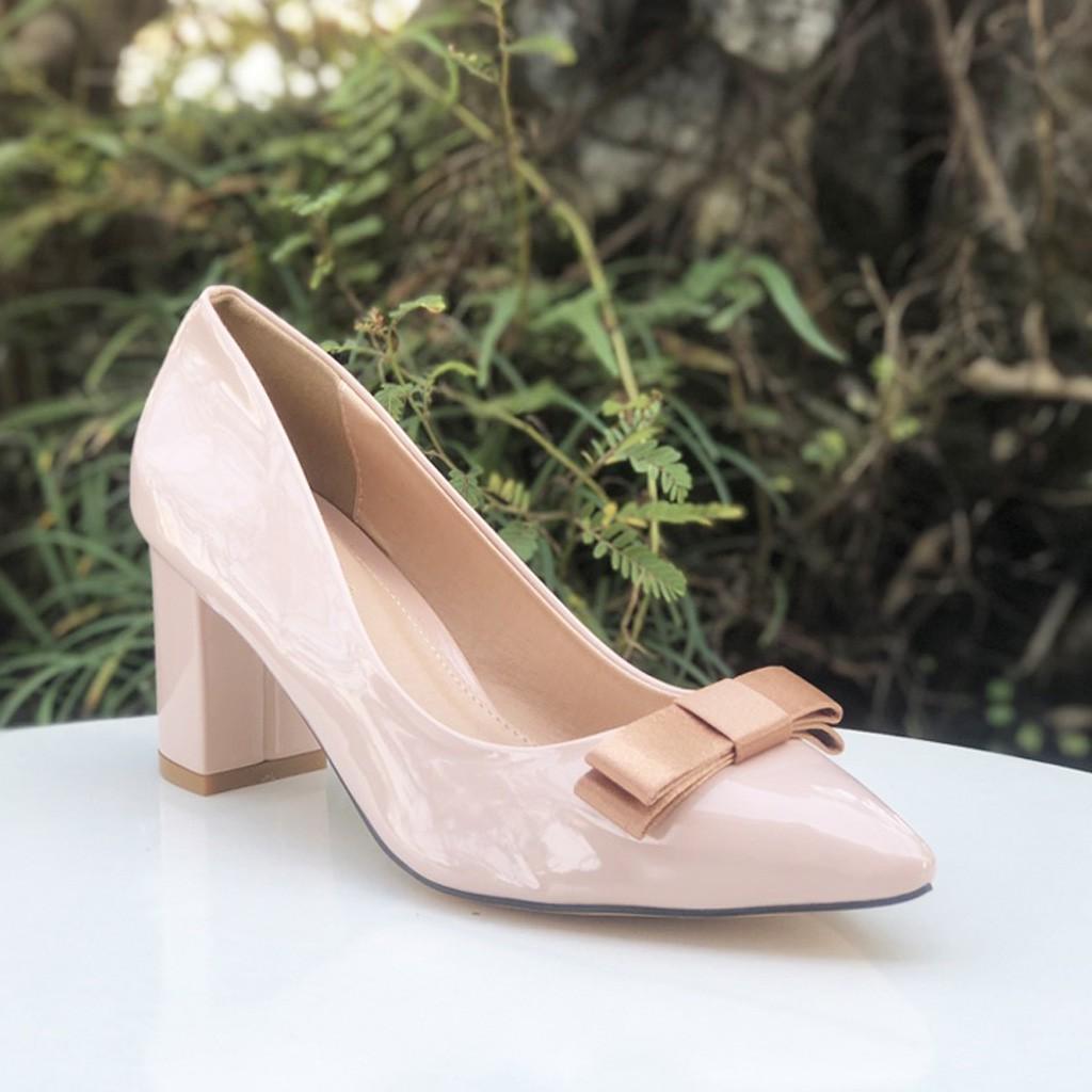 ✨Giày nữ da bóng đính nơ thời trang phong cách 21542