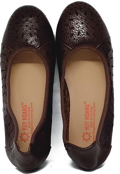 Giày nữ hoa văn Huy Hoàng da bò màu nâu 7949