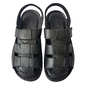 Sandal Nam Đẹp Chất Da Bò Thật Siêu Bền Êm Chân VNXK DE25D Đen