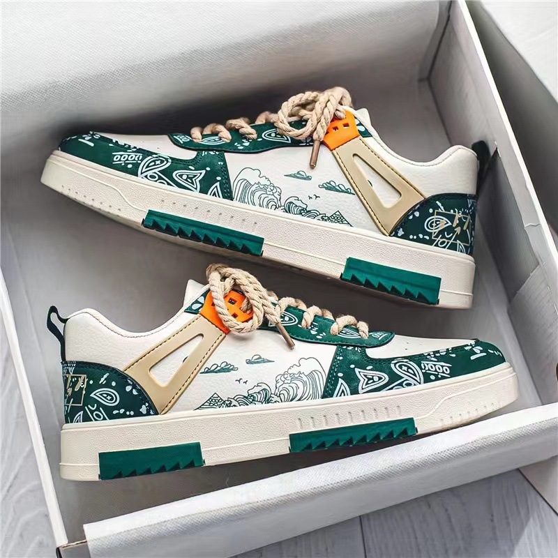 ✨Giày Sneakers Nam Laceva Hoạ Tiêt Vintage, Dây Vặn Thừng Trẻ Trung Mã G01