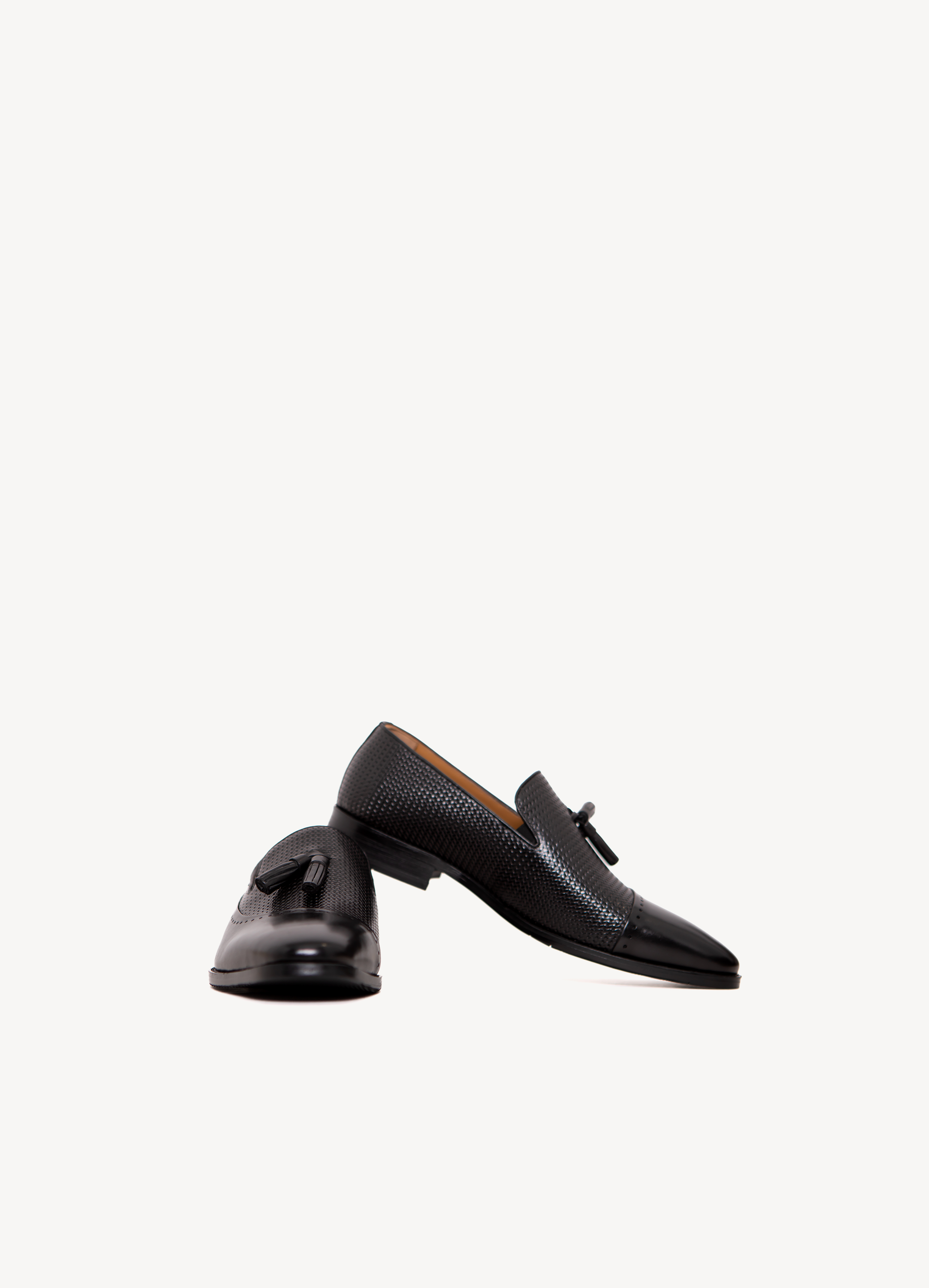 Mua tại Tiktokh6 1. Tổng quan - Kiểu dáng: Giày lười nam (Slip-on) - Màu sắc: Đen sang trọng – dễ phối đồ - Chất liệu: Da tổng hợp cao cấp, bề mặt mềm mại, chống nhăn