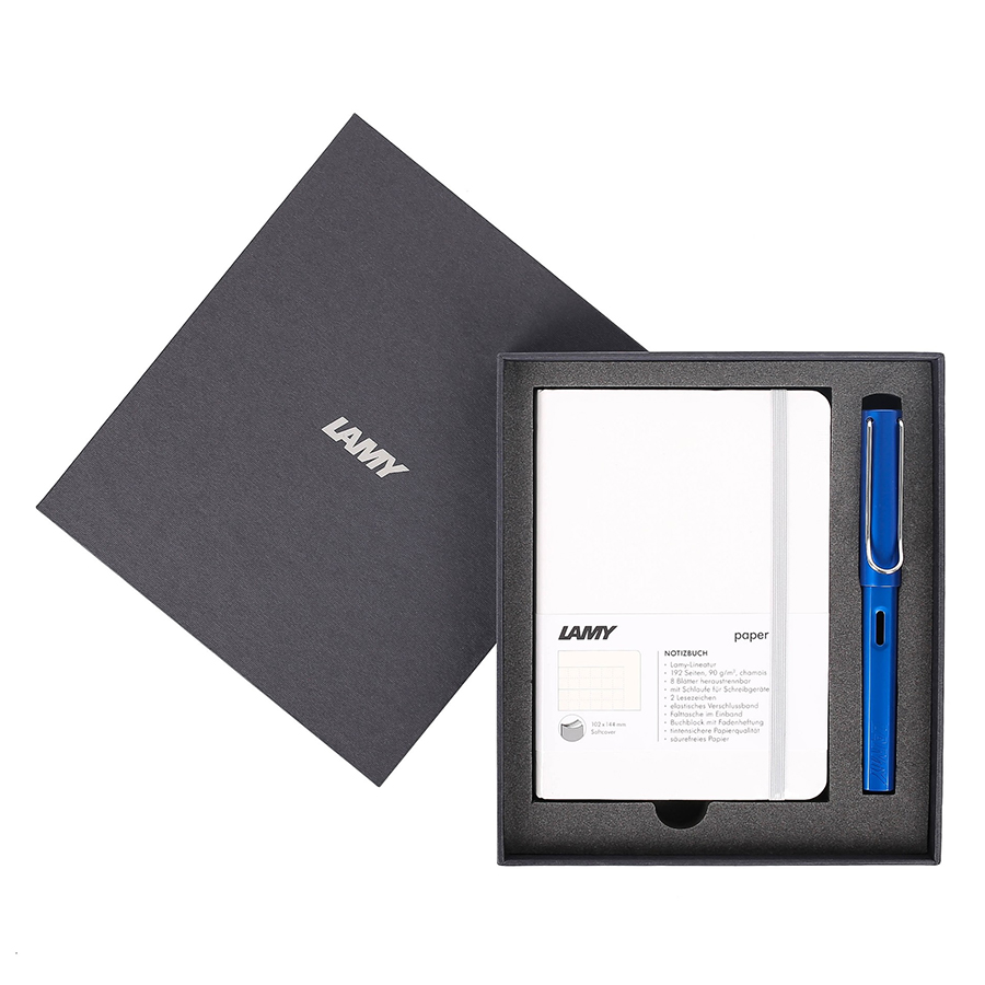 Đi kèm một chiếc bút máy LAMY Safari tinh tế. Tất cả được đặt trong một hộp quà LAMY sang trọng, thích hợp làm quà tặng