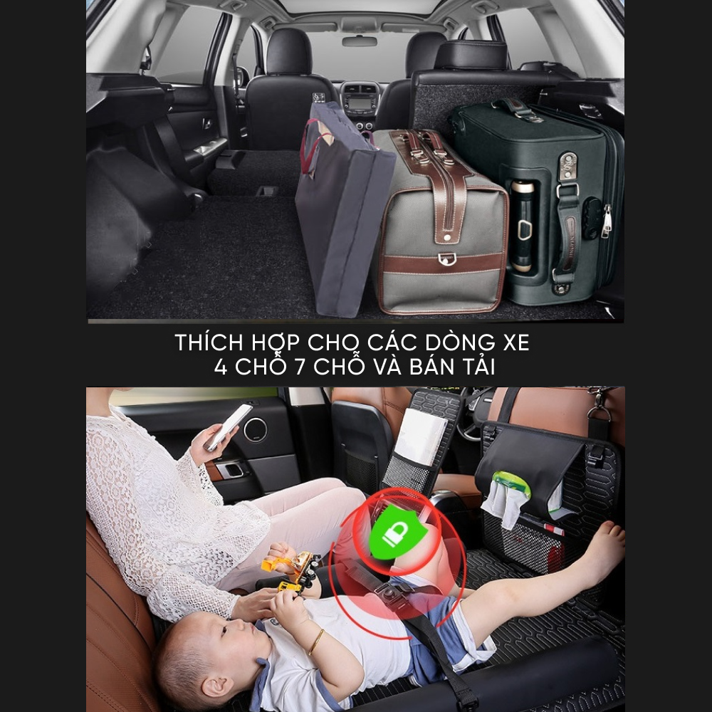 ✨Giường Đệm Gấp Gọn Xe Ô Tô 4 Đến 7 Chỗ Hàng VN Sản Xuất | Nệm Có Thể Tách Làm 2 Mảnh, Tích Hợp Túi Treo, Bàn Ăn