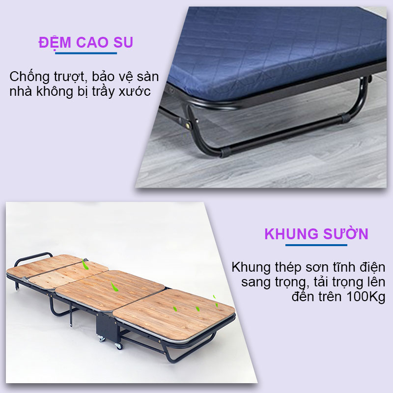 -Thiết kế gấp gọn giúp tối ưu không gian và chức năng của giường, có thể xếp thành ghế hoặc giường tùy ý.