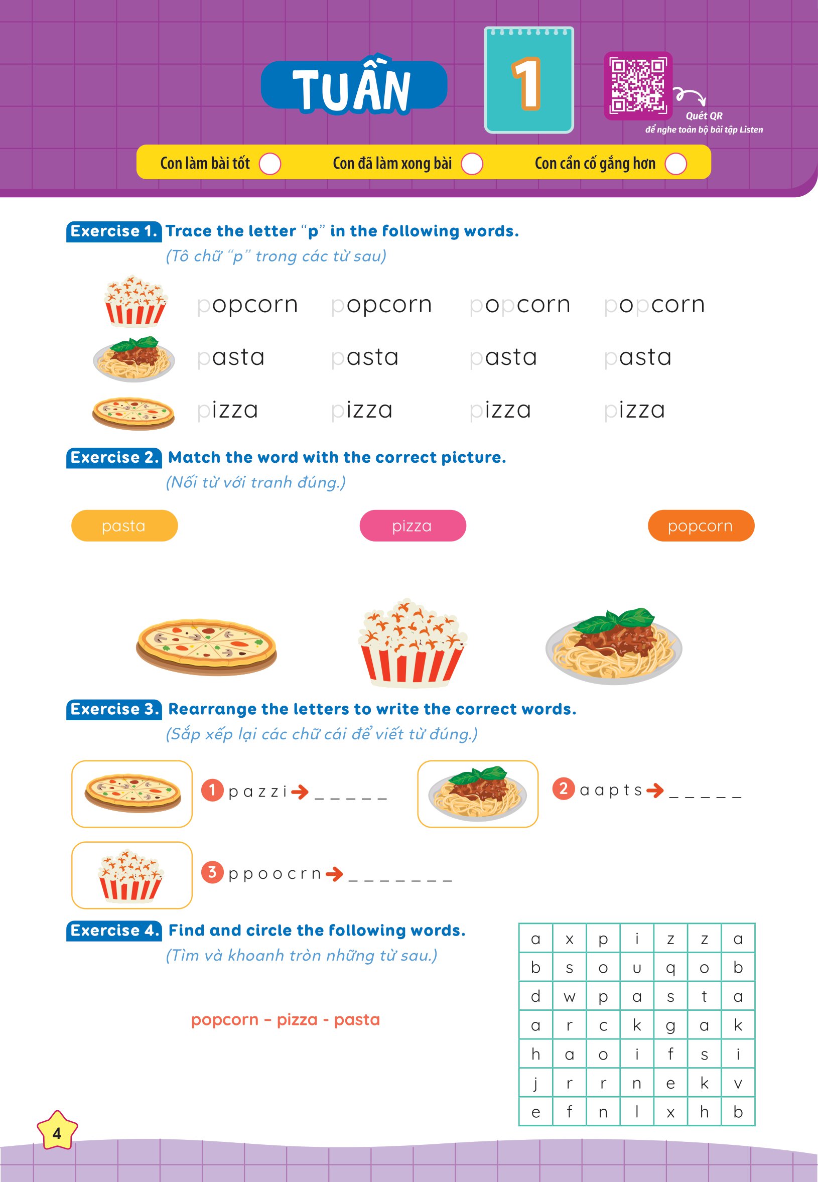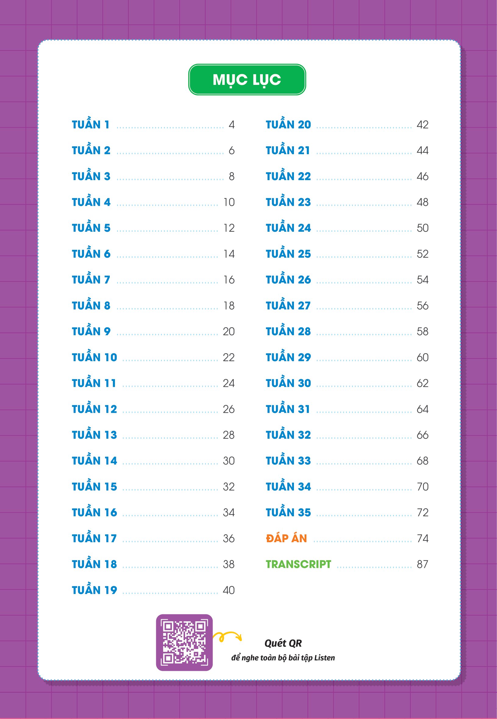 Bộ sách gồm các bài luyện tập chia theo tuần, ôn tập tổng quát kiến thức của 35 tuần học. Ngoài ra, cuốn sách cũng cung cấp các bài kiểm tra giữa kỳ và cuối kỳ để các con trau dồi thêm, tự tin chinh phục điểm cao trong các bài kiểm tra trên lớp.