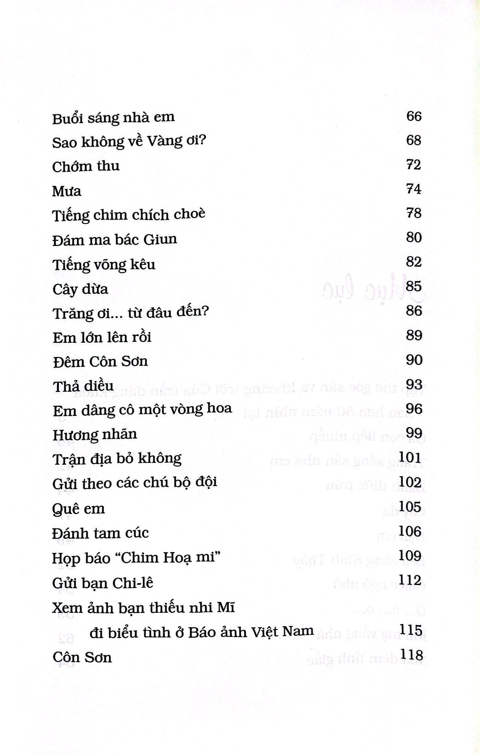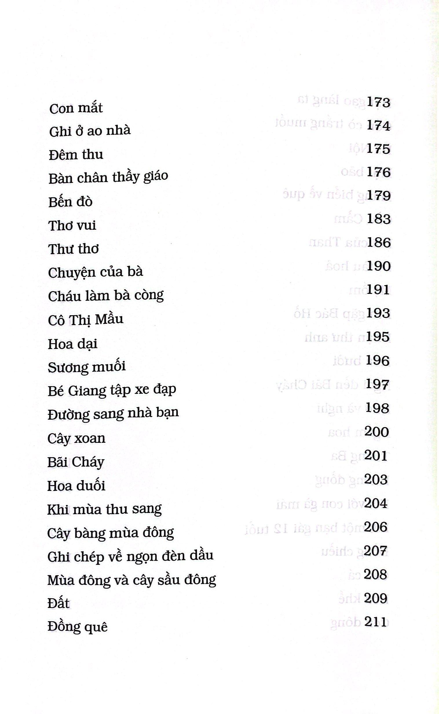 "Tôi tự coi đây là tuyển tập với những dấu ấn thật khó quên của tuổi thơ tôi, trong những năm tháng đánh giặc gian khổ và hào hùng. Làng tôi là một trạm nghỉ chân trên đường đi B của các trung đoàn đồng bằng Bắc Bộ, trong suốt thời kì huấn luyện ở núi rừng Yên Tử. Hàng ngàn chú bộ đội đã lần lượt rải chiếu ngủ trên nền đất nhà tôi. Các chú nghe thơ tôi, chép thơ tôi vào sổ tay và mang nó ra mặt trận. Sự tiếp xúc có phần ngẫu nhiên đó đã dạy tôi một cách nghiêm túc phải viết như thế nào."