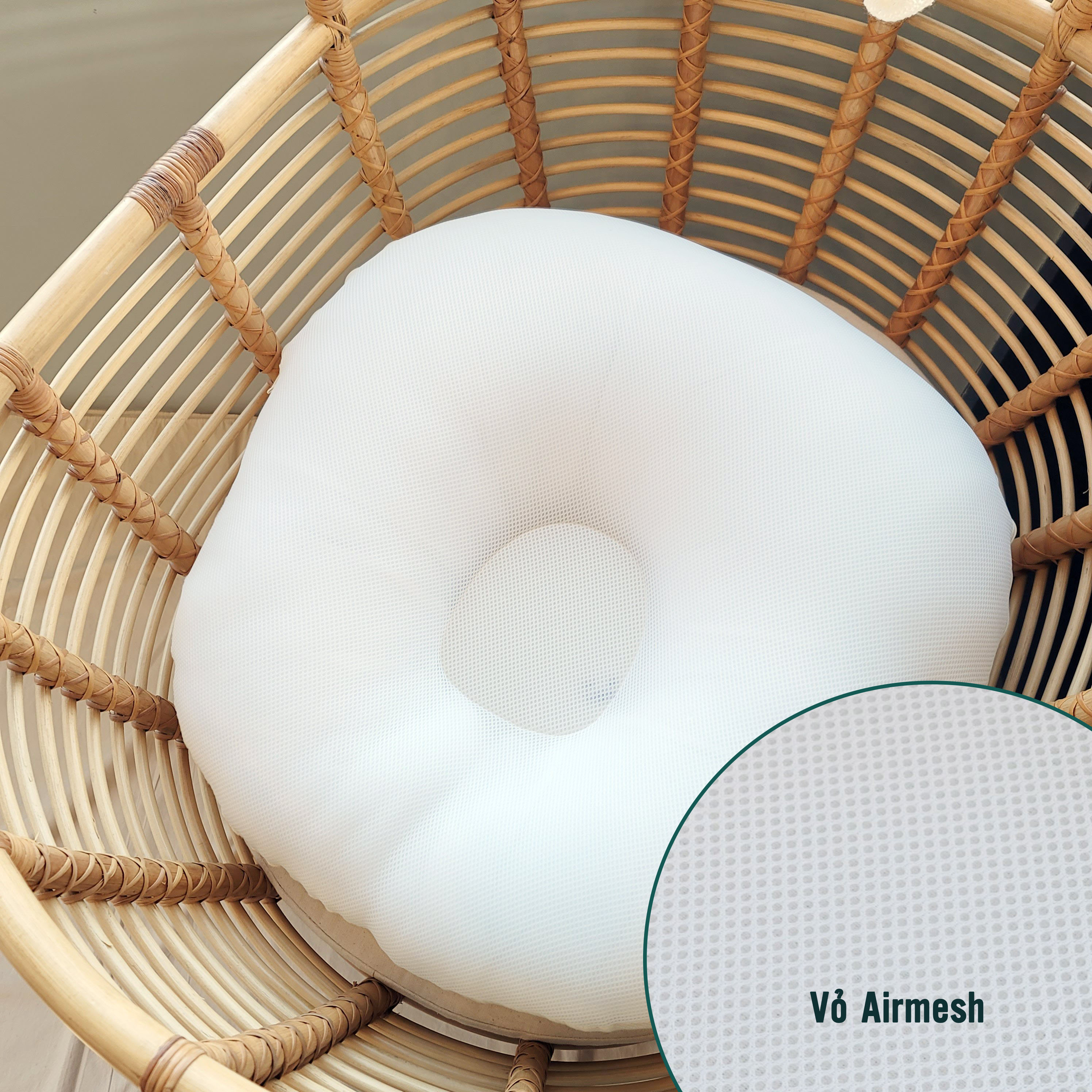 Gối mây chần bông cho bé sơ sinh 0-6th, vải cotton phối lưới thoáng mát - Kích thước: 25x40cm - Chất liệu: + Cotton chần bông + Bông Micro + Lưới thoáng + Mềm