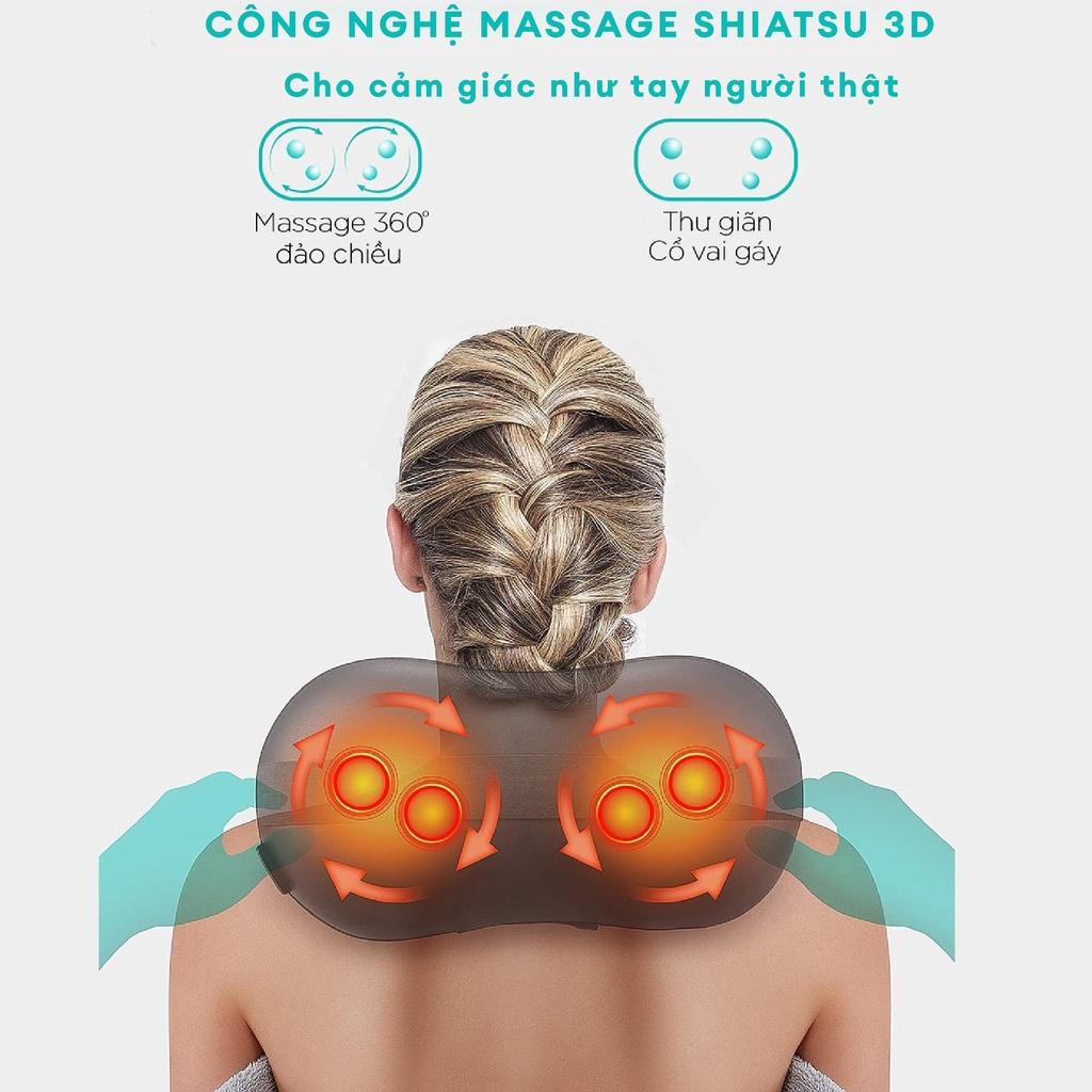 Tính năng - Gối massage không dây sử dụng pin sạc công nghệ cao thế hệ mới giúp bạn dễ dàng mang theo bất kỳ đâu - Tinh tế và nhẹ, chỉ nặng 2,2 kg,