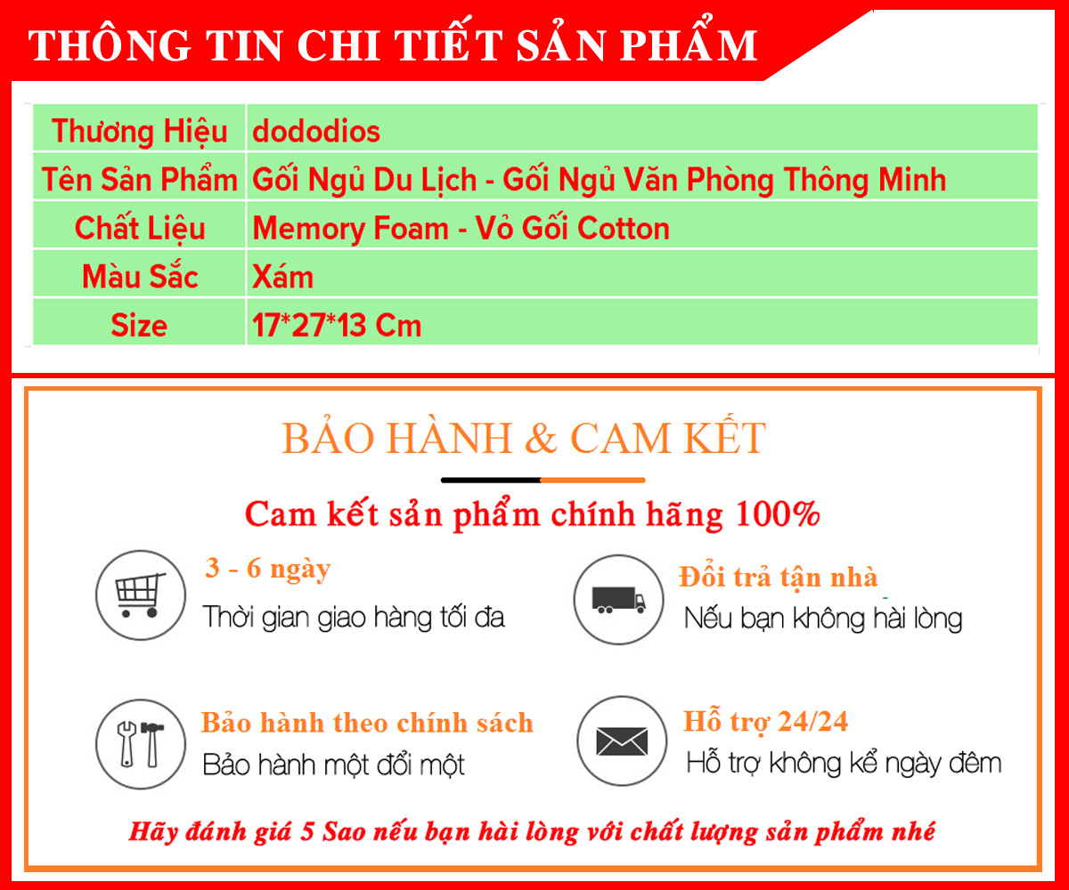 Mô tả chi tiết - Bộ Gối Ngủ Văn Phòng Bằng Memory Foam Mật Độ Cao Chính Hãng Dododios: