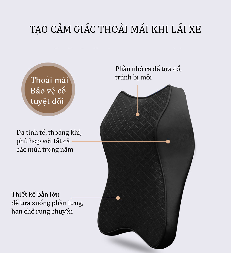 Gối tựa đầu cao su non - Gối tựa đầu xe hơi cao cấp, phù hợp mọi loại xe - Gối đầu được làm bằng cao su non có độ đàn hồi và êm ái