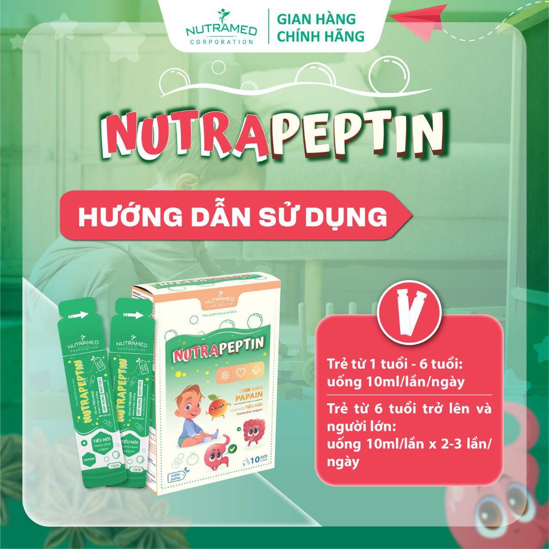 NUTRAPEPTIN - Hỗ trợ giảm đầy bụng, khó tiêu do tiêu hoá kém THÀNH PHẦN ️Alpha Amylase, papain, chiết xuất Tiểu hồi, chiết xuất Tía tô đất, chiết xuất Đại hồi CÔNG DỤNG ️Hỗ trợ