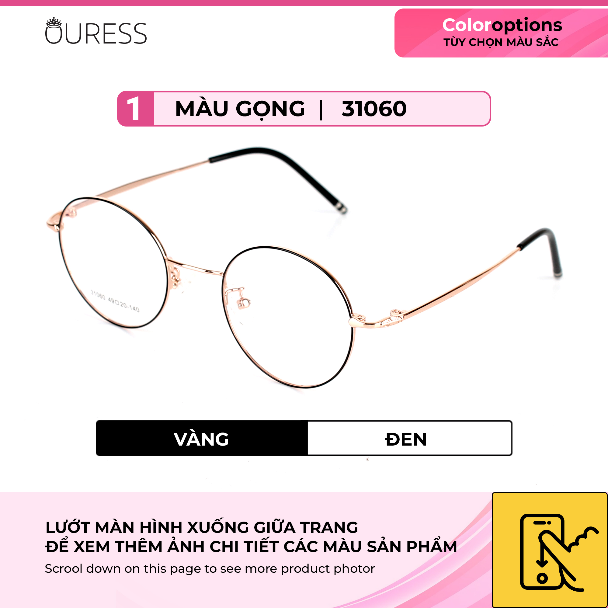 Bộ phụ kiện đi kèm theo Kính Ouress gồm: -Khăn lau kính và hộp đựng kính ( bộ phụ kiện này không áp dụng cho những sản phẩm sale trên 40% ) —-------------------------------------- HƯỚNG DẪN KHI MUA GỌNG & TRÒNG TẠI OURESS