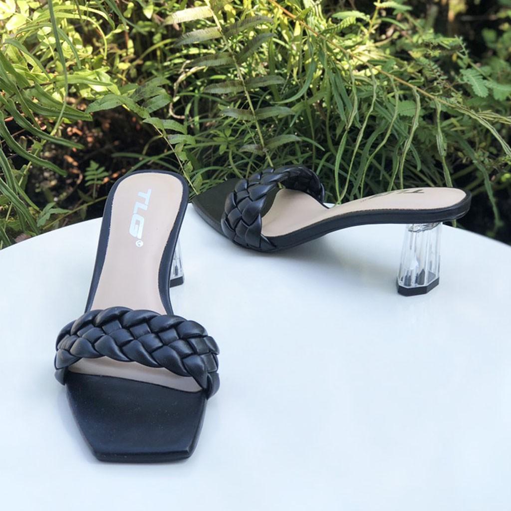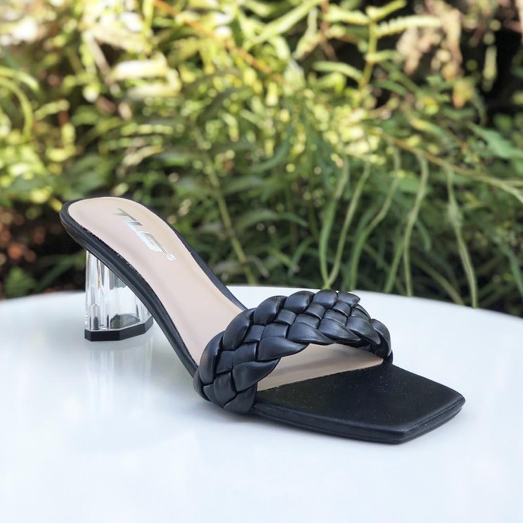 - Dép nữ cao gót quai ngang một bản TRường Hải màu đen gót vuông 8cm da mềm DN139 thiết kế với kiểu dáng ôm chân, thon gọn, thoải mái di chuyển mà không lo