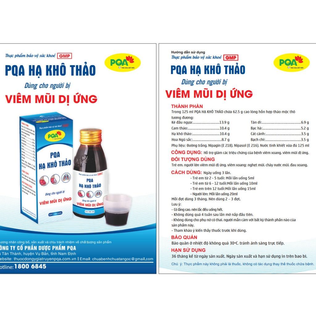 ✨Hạ Khô Thảo PQA Hỗ Trợ Thông Mũi, Thông Thoáng Đường Thở Và Viêm Mũi Dị Ứng Hộp 125ml
