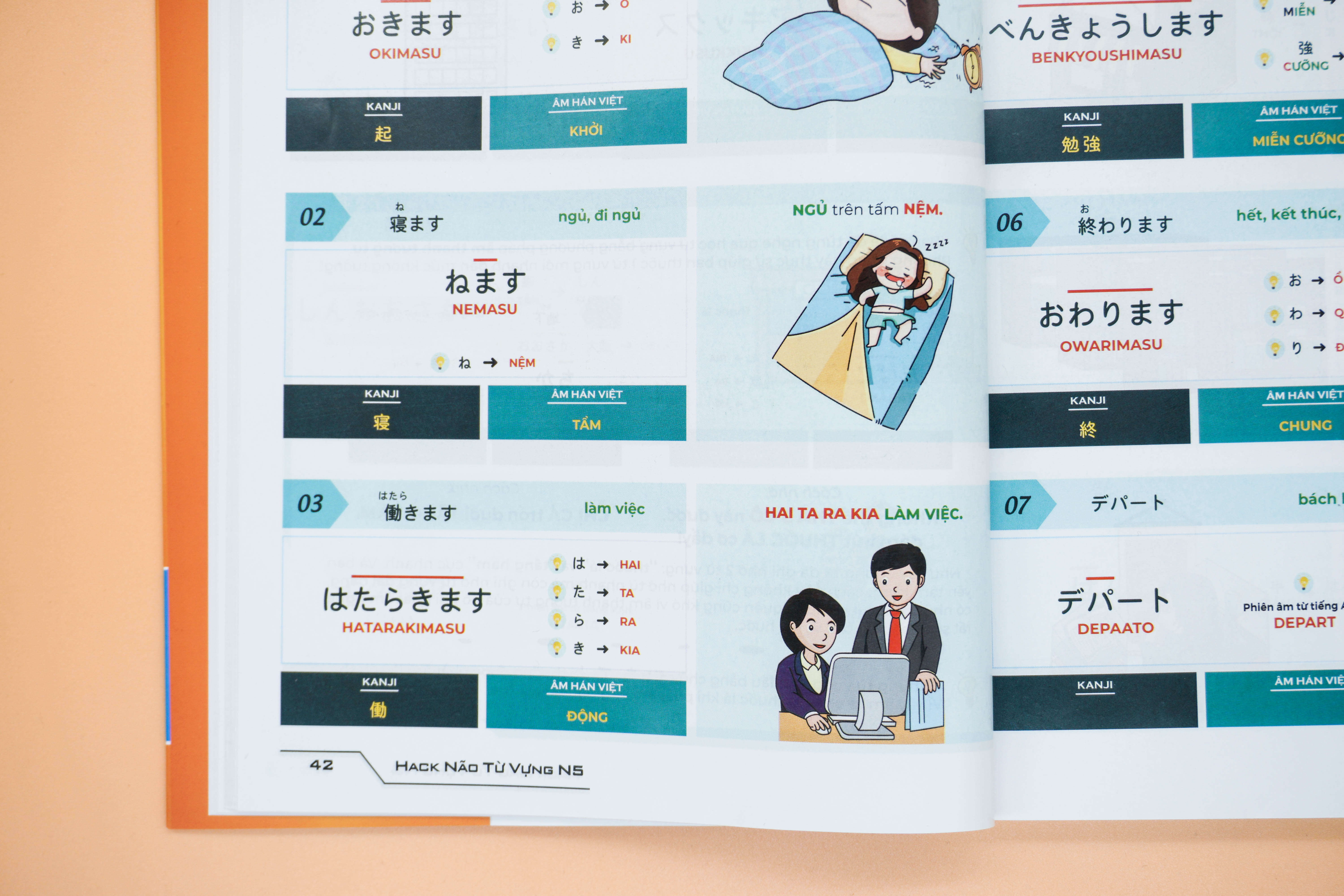 ️ Thông tin sách Hack Não Từ Vựng N5 - Phương pháp học: 1. Phương pháp âm thanh tương tự 2. Phương pháp từ giống nhau 3. Phương pháp chuyển âm Hán Việt - Nội