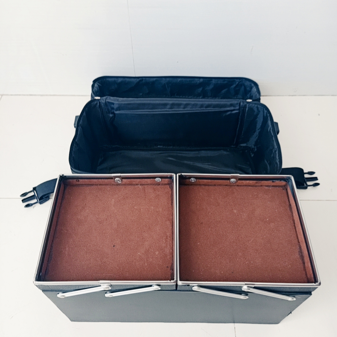 Cốp vải dù dày dặn 2 tầng 4 khay size lớn chuyên dụng để đồ nail, mi, phun xăm, trang điểm chuyên nghiệp