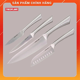 Bộ dao Neoflam gồm 3 dao: Dao chef, dao santoku 7' và dao gọt. Dao được làm từ thép chống gỉ hàm lượng các bon cao, sắc bén và sạch bóng, dễ dàng chế biến