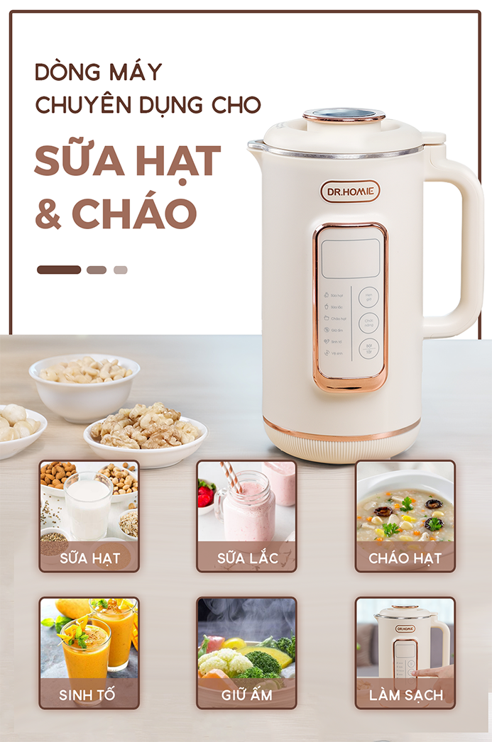 Không chỉ giúp khách hàng tự tạo ra những ly sữa thơm ngon và bổ dưỡng với ít công sức. Drhomie AN60 còn được trang bị các chức năng đặc biệt như nấu cháo hạt, xay sinh tố, giữ ấm, sữa lắc giúp người dùng có thể tự do sáng tạo, giúp giảm bớt thời gian nấu nướng nhưng vẫn đảm bảo được dinh dưỡng cho cả gia đình.