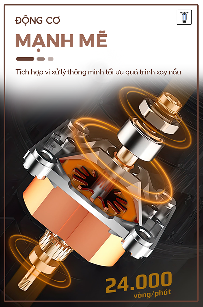3 - Motor công suất cao với cơ chế chống ồn trong quá trình nấu, phù hợp với hộ gia đình có con nhỏ hoặc ở chung cư đòi hỏi phải có không gian yên tĩnh.