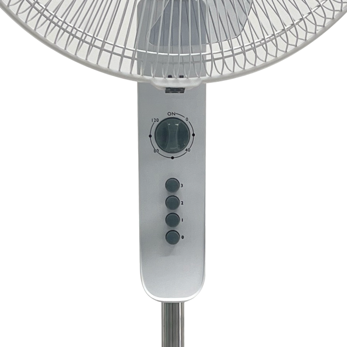 Mô tơ không chổi than DC bền bỉ tiết kiệm điện. ·        Điều chỉnh hướng gió lên xuống. ·        Có thể đặt nhiều tốc độ khác nhau và có điều khiển. ·        Ba cánh quạt bằng nhôm. ·        Thiết kế hình tròn dáng cái trống bằng kim loại. ·        Lồng quạt hình xoáy lò xo. ·        Đế quạt bằng kim loại chắc chắn kèm chân chống đổ. ·        Nguồn điện vào: 220-240V, 50/60Hz. ·        Nguồn ra: DC 12.6V, 1.5A. ·        Công suất: 25W.