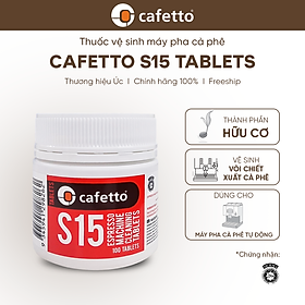 Viên vệ sinh máy pha cà phê Cafetto S15 - An toàn và hoàn toàn loại bỏ dầu cà phê và cặn cà phê từ các máy pha cà phê espresso tự động. - Công